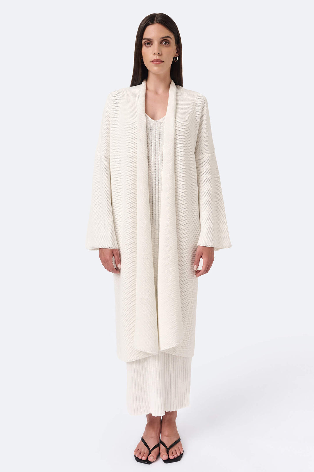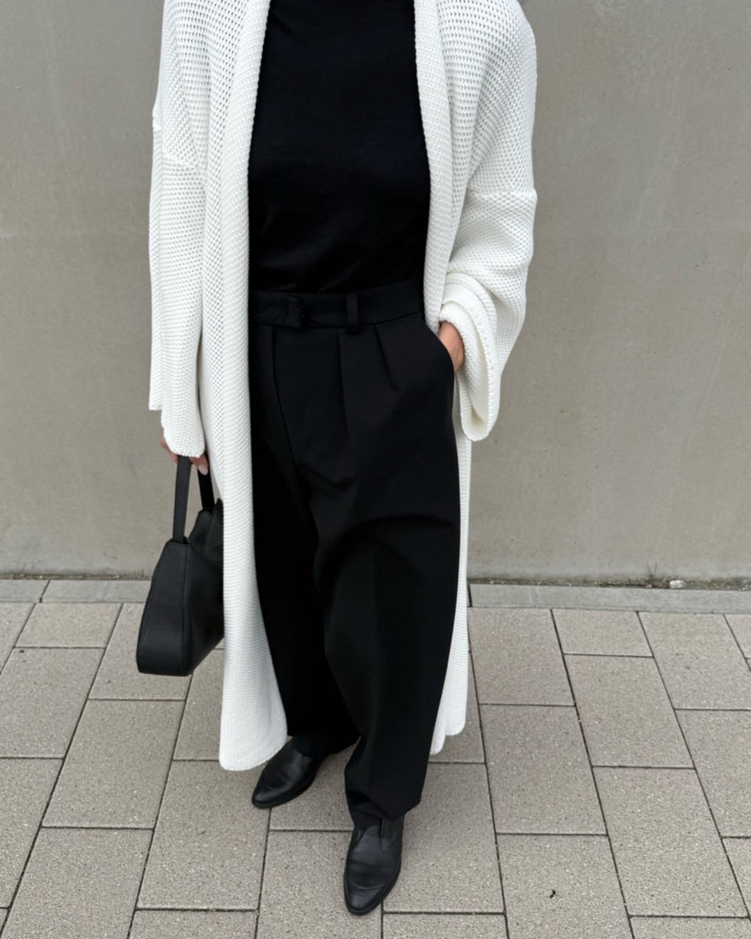 "This cardigan coat is a wonderful piece! The knit feels pleasant on the skin, the cut falls smoothly and the length gives it a modern, relaxed look. The white shade is easy to style and works for many occasions. It’s comfortable, very well-made and looks even better in person. I’m very happy to have it!"